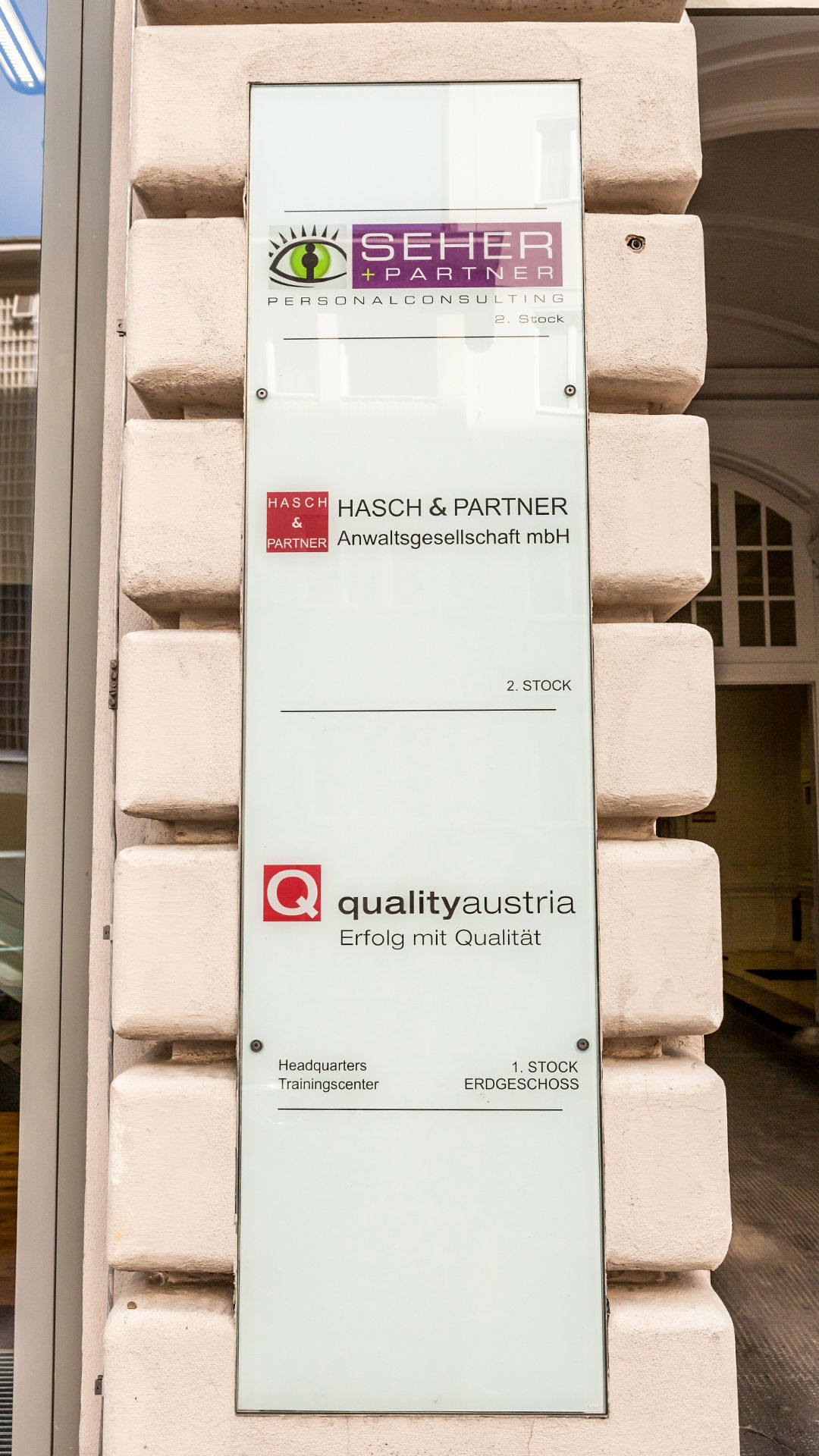 Präsentieren Sie Ihr Unternehmen in modernen stilvollen Designs. Glasschilder als Wegweiser und Informationstafel.